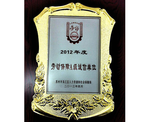 2012年度劳动保障A级诚信单…